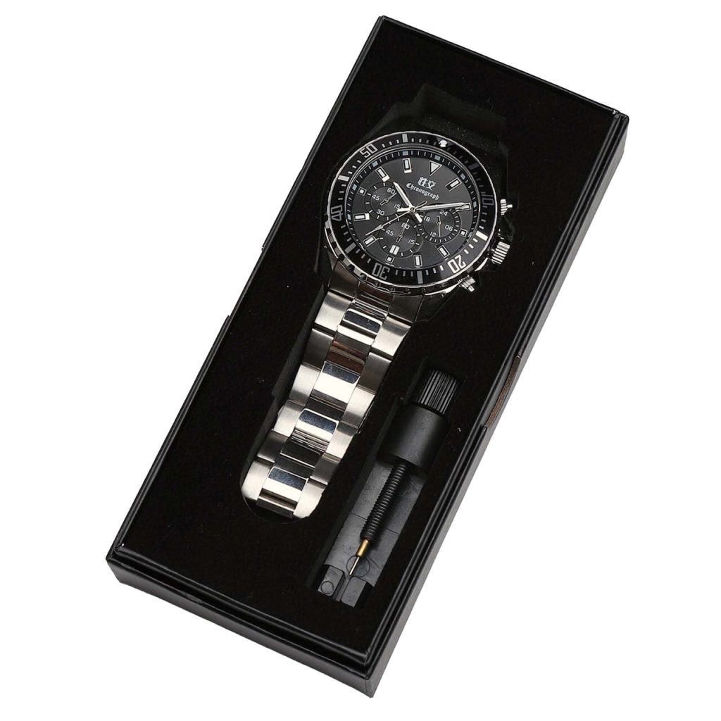 高級感のあるメタルブレス仕様とクロノグラフの実用性で、