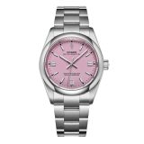 搭載された日本製MIYOTAムーブメントが、正確な時を刻み続ける。自動巻きと手巻きの両対応で、使うほどに愛着が深まる設計です。防水性能は日常生活用の100m耐水仕様。華やかな見た目の裏に、確かな実用性が息づいています。