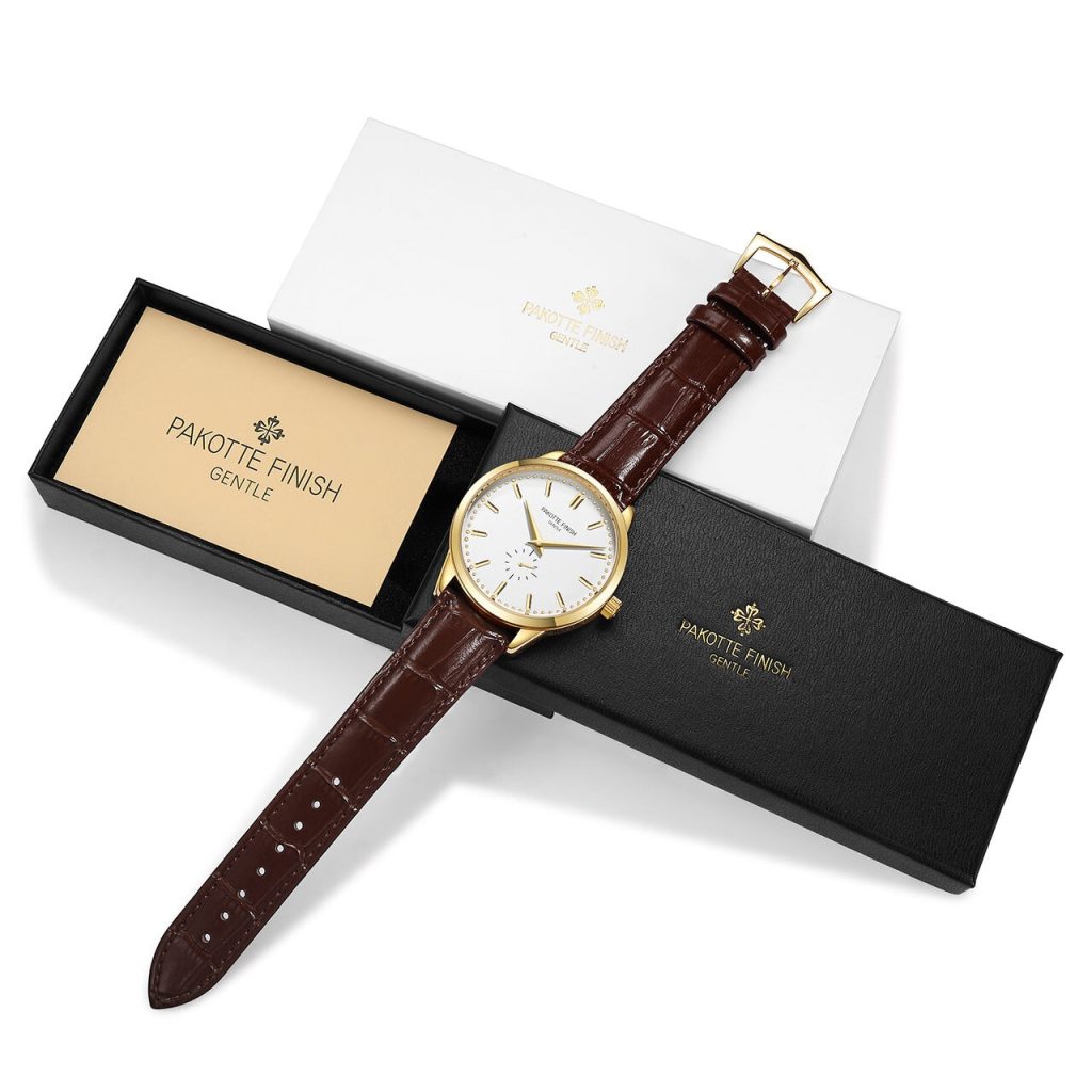 ゴールドのケースにブラウンのレザーベルトを組み合わせた一本は、落ち着きのある大人の雰囲気を漂わせます。ただ真面目すぎる堅さではなく、柔らかな温かみを感じさせるバランスが絶妙。フォーマルな場面でも自然に馴染み、同時に遊び心も忍ばせるデザインは、多彩なシーンで腕元を格上げしてくれる存在です。
