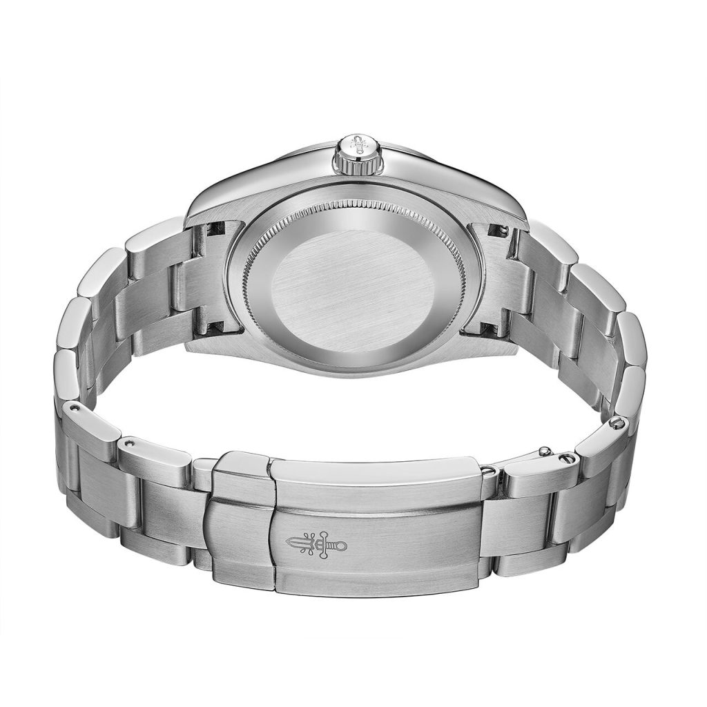 搭載ムーブメントはMIYOTA製Cal.8215。精密な自動巻き機構により、手首の動きで自然にゼンマイが巻き上がります。