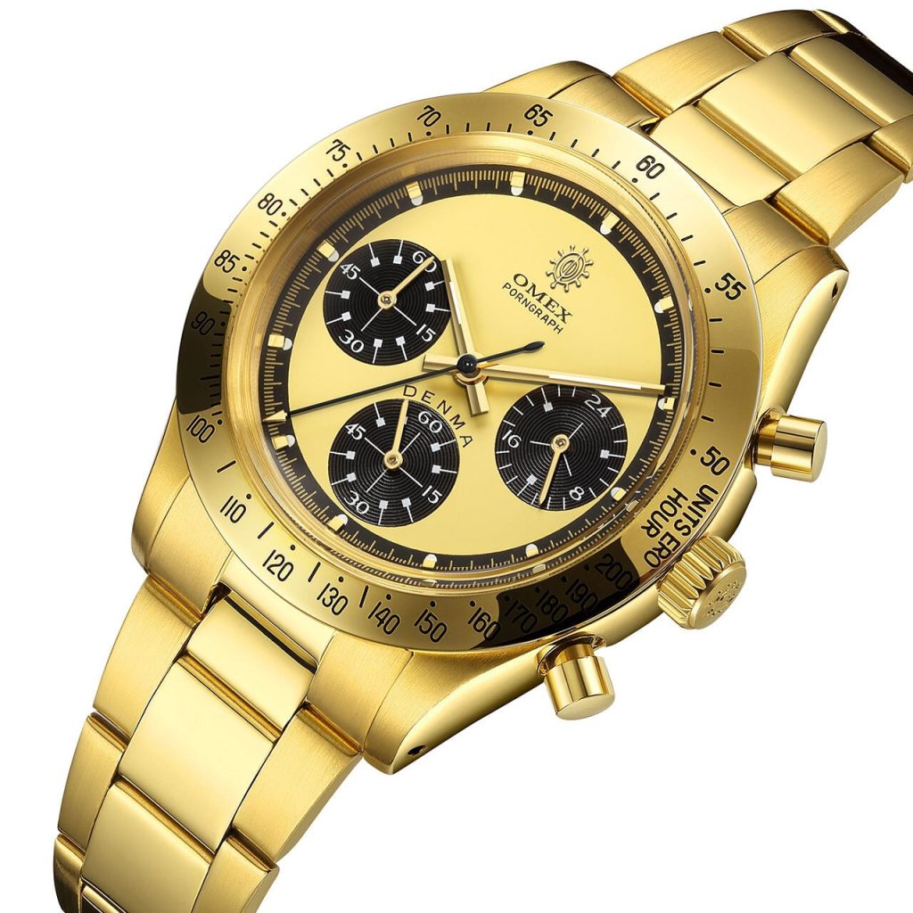 ゴールドの迫力、クロノグラフの機能性、そして扱いやすさ。そのすべてが過不足なく揃っているから、選ぶ理由が分かりやすい時計です。主張しすぎず、埋もれもしない。腕元で確かな役割を果たす、信頼できる一本です。