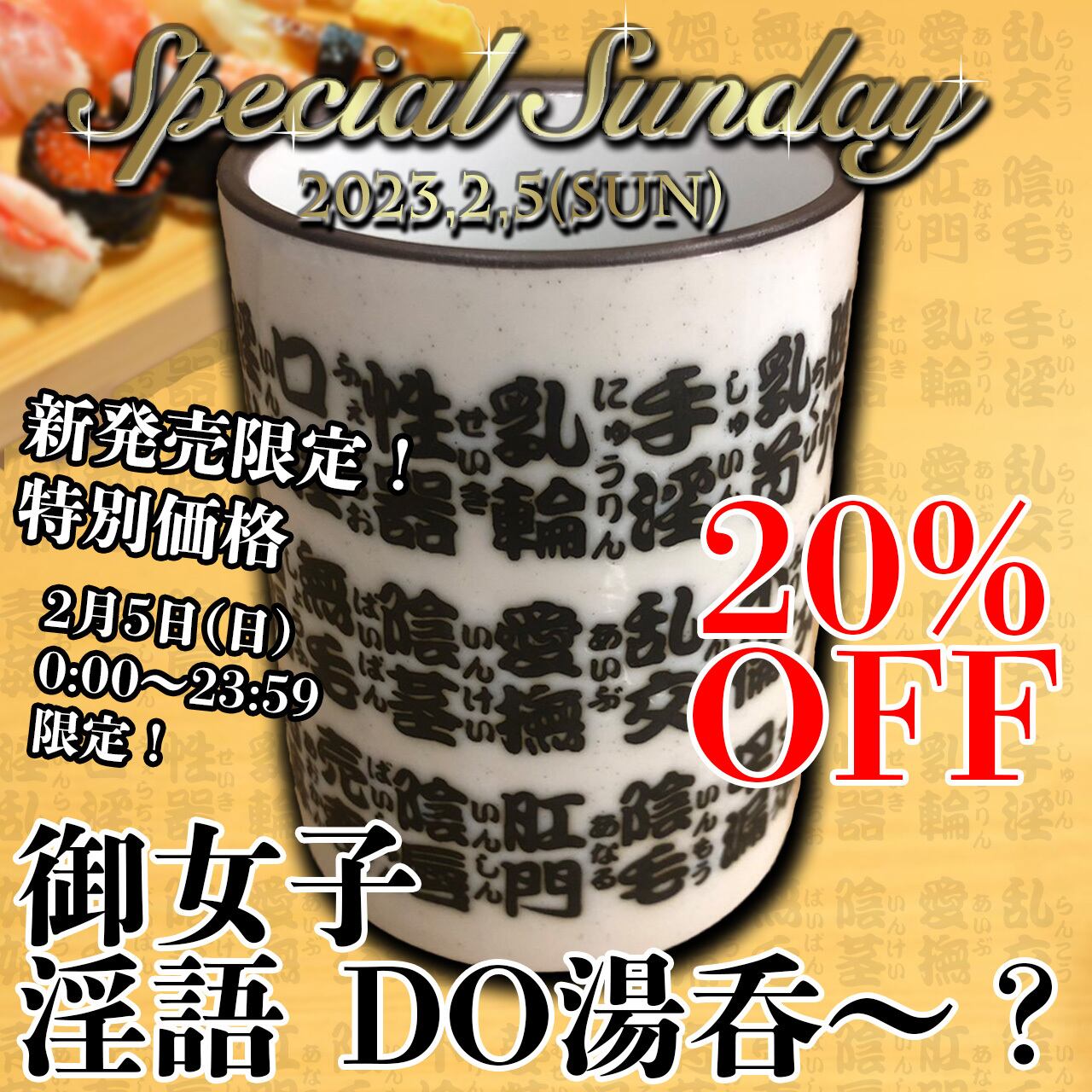 なんと全部エッチな言葉が書いてある湯呑なんです。