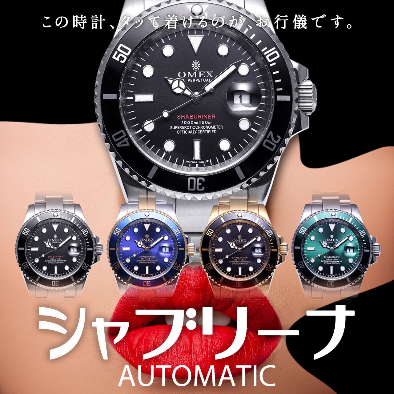 風防にサファイアガラスを採用し、特殊加工により18時(股間)の位置にOMEXの透かしを刻印。スペシャルなシャブリーナに仕上げました。