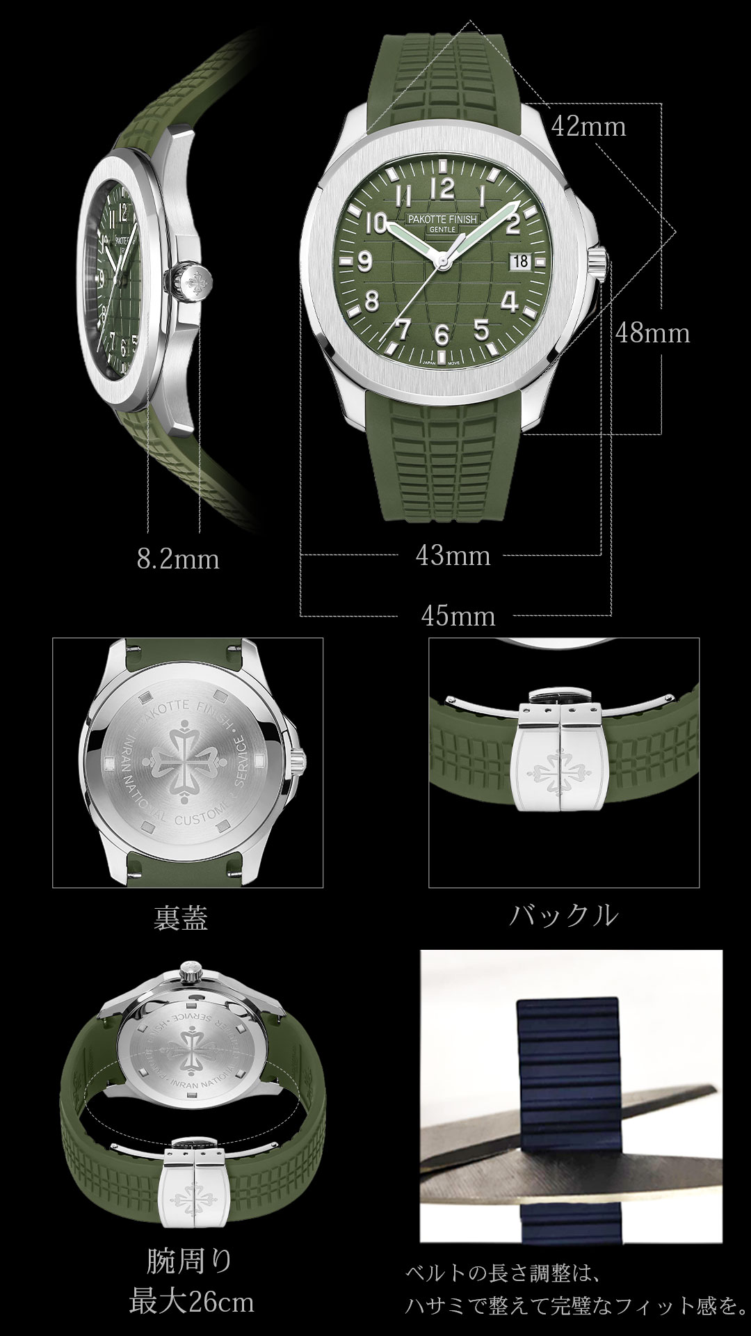 | ケースサイズ | ケースサイズ:約42mm ケース厚:約8.2mm |