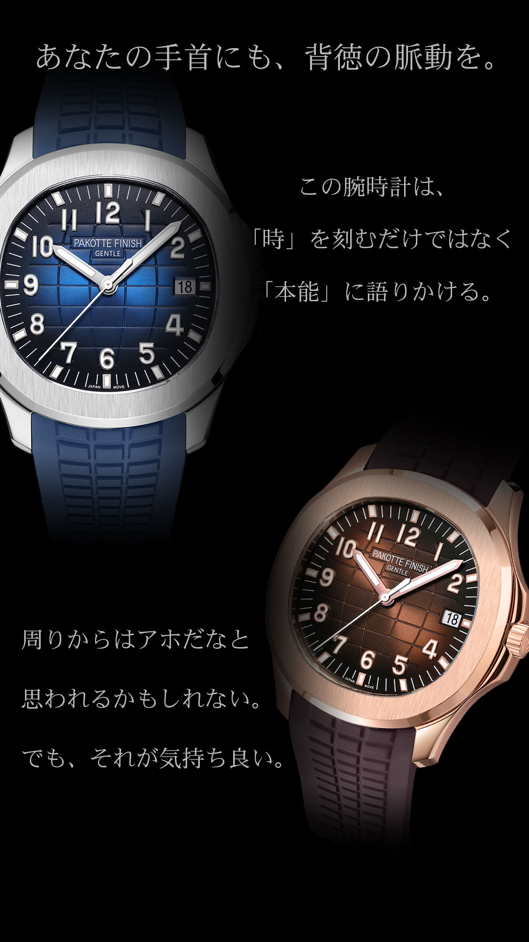 スケベな感性を持つ人々が、日常の中でさり気なく身に付けることができ、さらに一つの腕時計から「出逢い」と