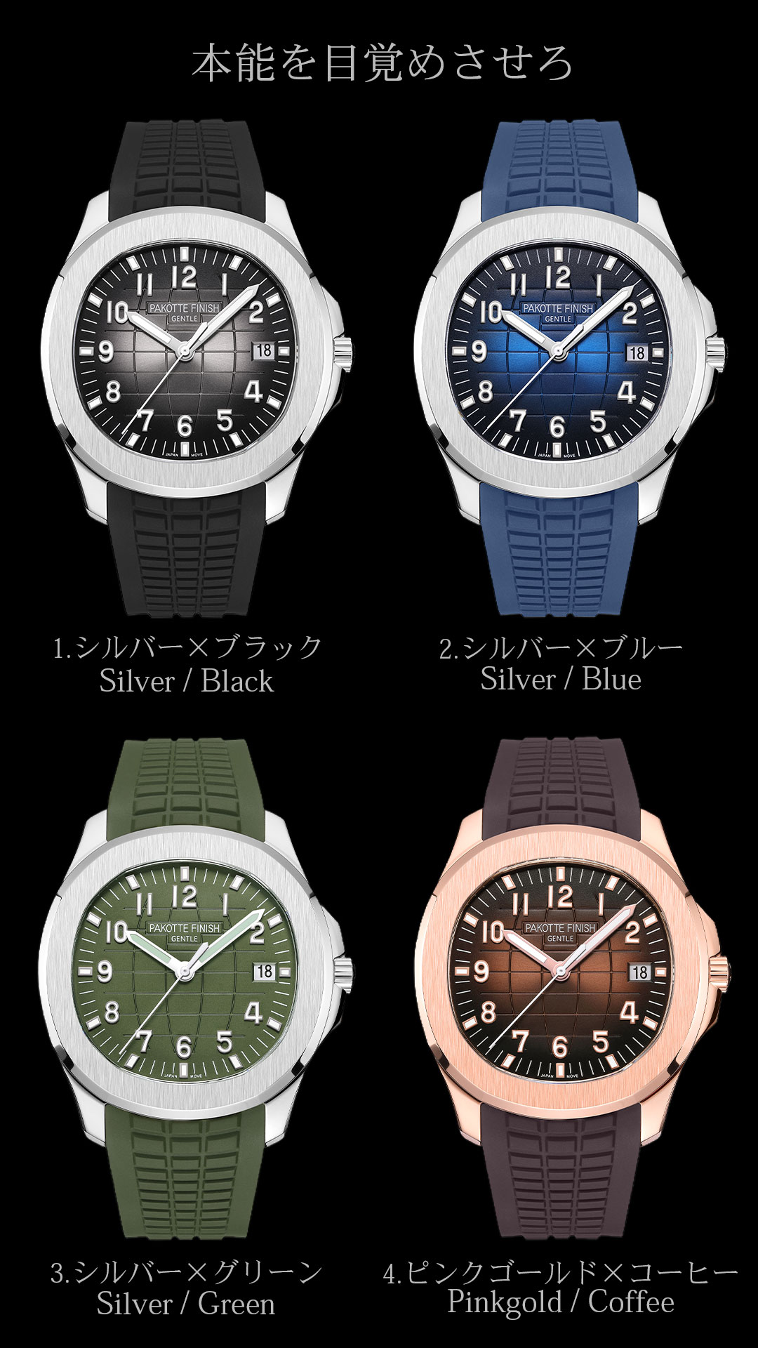 | カラー | シルバー×ブラック シルバー×ルー シルバー×グリーン ピンクゴールド×コーヒー |