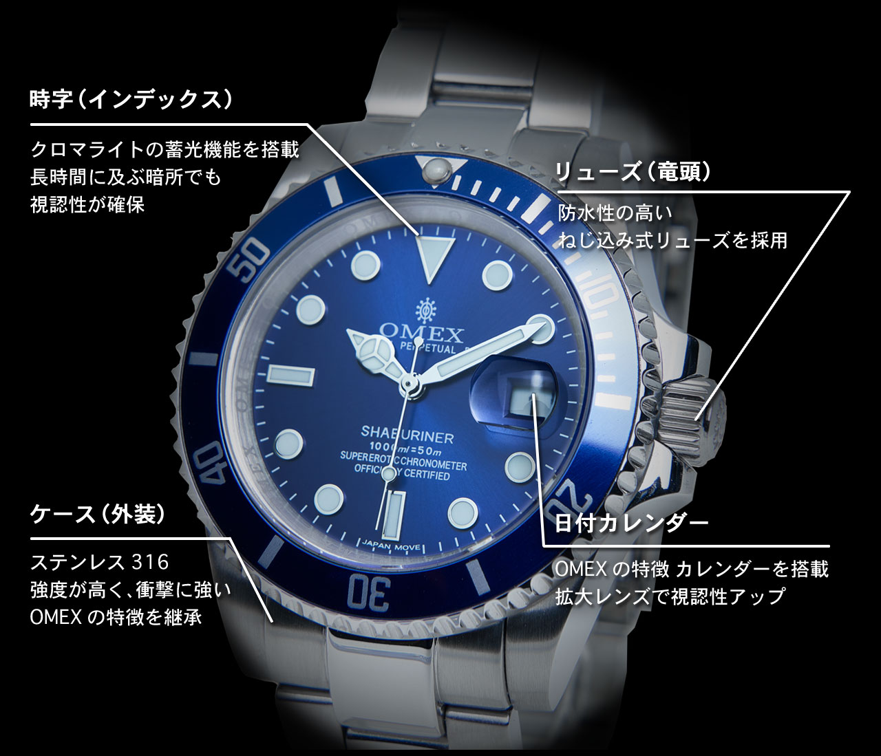 | ムーブメント詳細 | キャリバー:MIYOTA 2115 日常生活用強化防水(5気圧) 日付表示 |