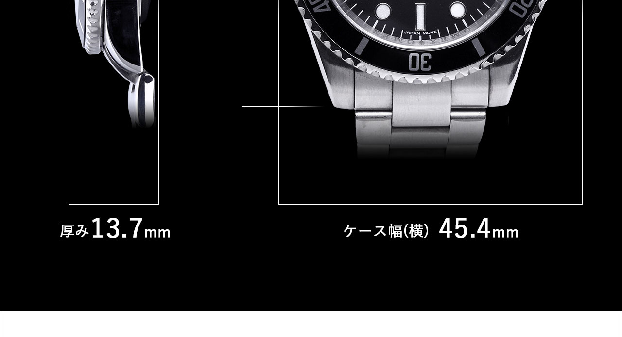 | ケースサイズ | ケースサイズ:約45.4mm × 47.7mm(リューズ込み) ケース厚:約13.7mm |